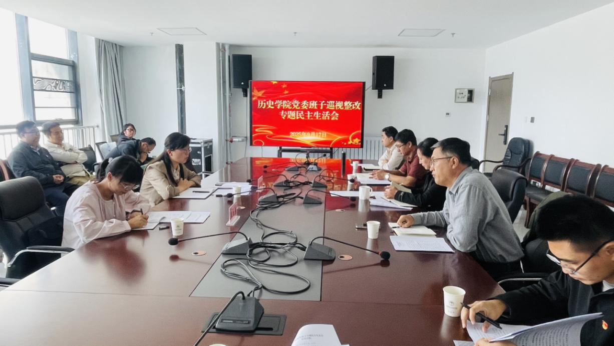 为深入学习贯彻习近平新时代中国特色社会主义思想和党的二十大精神,切实做好巡视整改工作,历史学院党委班子于9月17日下午召开巡视整改专题民主生活会,第五督导组组长夏晓丽同志、组员李生莲同志到会指导,学院党委委员参加会议,院长助理、师生党员、无党派人士、民主党派代表列席会议。会议由学院党委书记张晓婷主持。