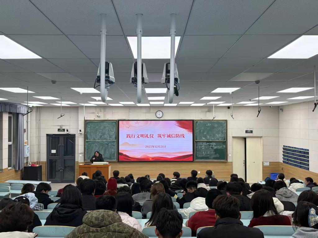 为落实时代新人铸魂工程工作要求,推进社会主义核心价值观教育,发挥学生党员与学生干部的榜样作用,提升学生思想道德与文明礼仪素养,我院于2025年12月21日在东二楼F107开展“践行文明礼仪,筑牢诚信防线”主题教育活动。党支部全体党员、全体学生干部及全体宿舍长参加本次活动。