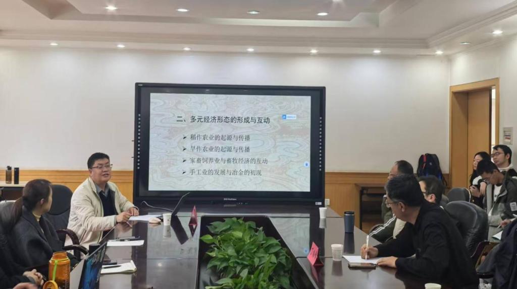 讲座伊始,段小强教授从旧石器时代、新石器时代及“三交史”(交往交流交融史)的宏观背景切入,系统阐述了史前时期中华民族的起源。汇报内容围绕四个议题展开,一是文化演进与早期国家的出现;二是多元经济形态的形成与互动;三是族群互动与社会结构的变迁;四是中华文明的起源与文明共生。整场讲座,段小强教授引证大量考古发现与历史案例,内容翔实,逻辑严密,从多角度、多视野深化了在场师生对史前时期中华民族的起源与早期交往交流交融的理解,引发了在场师生的热烈反响与深入思考。