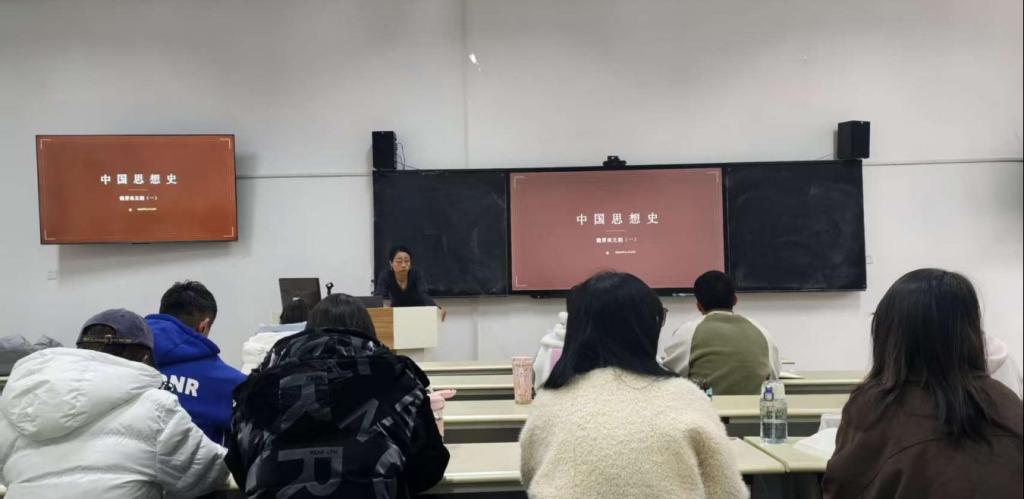 课堂示范引领,强化价值传导。以《中国思想史》课程为例,夏芳老师进行了现场教学示范。她围绕秦汉、魏晋时期文人志士面对现实挑战,在治国理念、思想革新方面勇于探索、不懈实践的史实,生动诠释了古人的家国情怀。课程进一步延伸联系:近代中国面临西方文化冲击时,文人学者积极投身社会实践以应对挑战;新中国初期,老一辈科学家秉持“两弹一星”精神走出强国之路;当下,更鼓励历史学专业的同学们要以“四有好老师”为标准严格要求自己,投身祖国基础教育事业,拿稳中华民族伟大复兴的“接力棒”,当好社会主义事业的接班人。