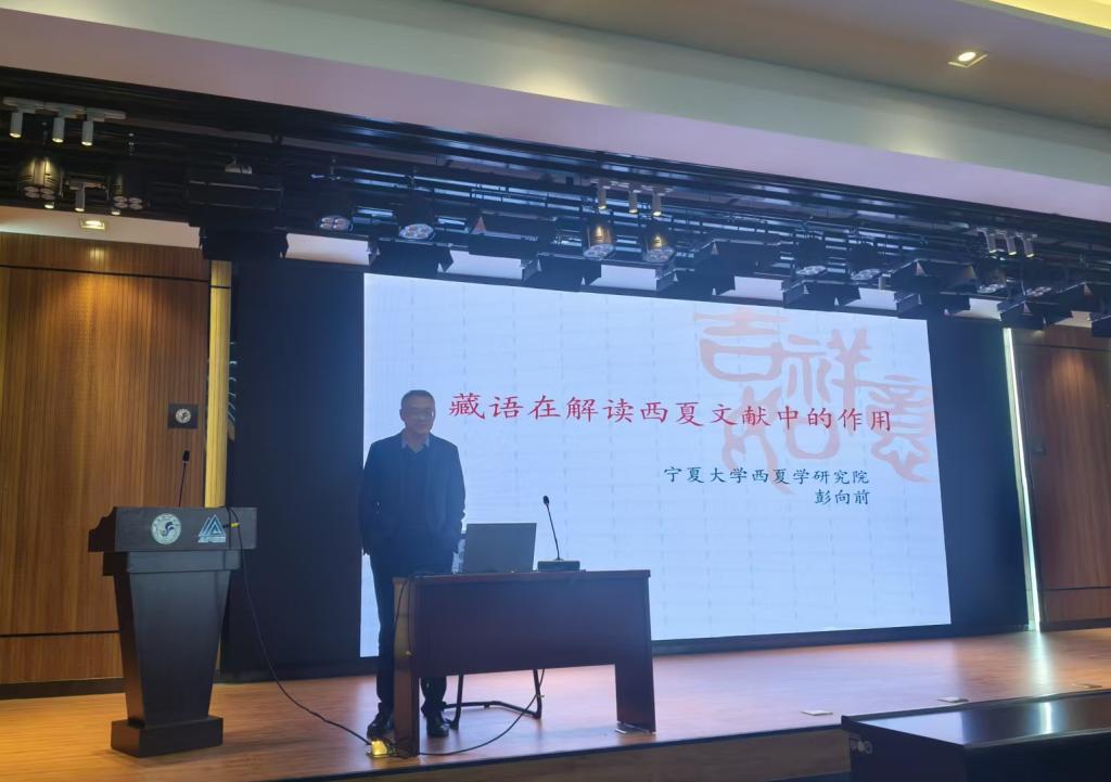 2026年4月15日下午,应青海师范大学历史学院、藏区历史与多民族繁荣发展研究省部共建协同创新中心诚邀,宁夏大学民族与历史学院副院长、西夏学研究院院长彭向前教授在我校城北校区高科院16楼报告厅开展了以《藏语在解读西夏文献中的作用》为题的学术讲座,本次讲座由历史学院副书记杨荣春老师主持,历史学院青年教师、本硕博各年级学生50余人参加,还吸引了民族师范学院藏文系等其他院系研究生的踊跃参与。